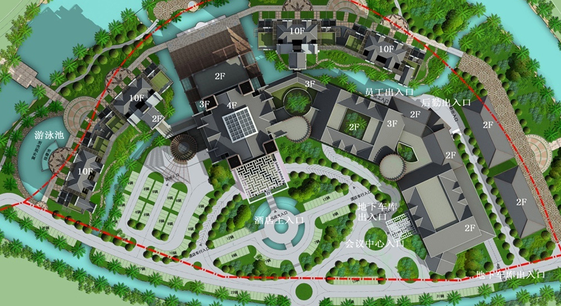 康泉18国际生态旅游城项目位于广东省河源市东源县康禾镇,距离河源市区65公里,距离河梅高速黄田出入口约17公里,项目区位条件优越。康泉温泉养生度假酒店采用东方建筑风格,结合客家建筑文化元素,营造出恢弘大气、重台叠檐的效果,建筑群体立面体量主次分明,虚实对比强烈。整个建筑物融汇于环境之中,建筑造型丰富和意境深远。绿化庭院与河道以及周边景观空间互相渗透、相互衬托,既营造出一个良好的环境,又解决了建筑的采光问题,满足现代社会生态建筑的理念。