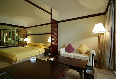 该饭店坐落于丽江市主干道——香格里拉大道,距丽江机场仅30多分钟车程,为享誉中外的著名设计师广州莫伯治建筑师事务所的精心杰作,共设宽敞舒适的饭店客房及套间435间,房间面积超过45平方米。室内设计雅致,设备齐全。更令人叫绝的是,宾客可透过宽敞明亮的窗户,眺望神奇雄伟的玉龙雪山,尽情享受大自然的神韵。